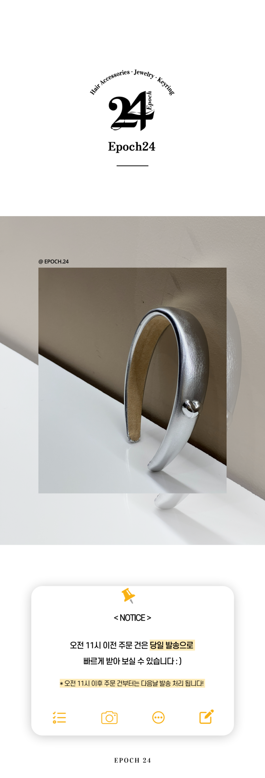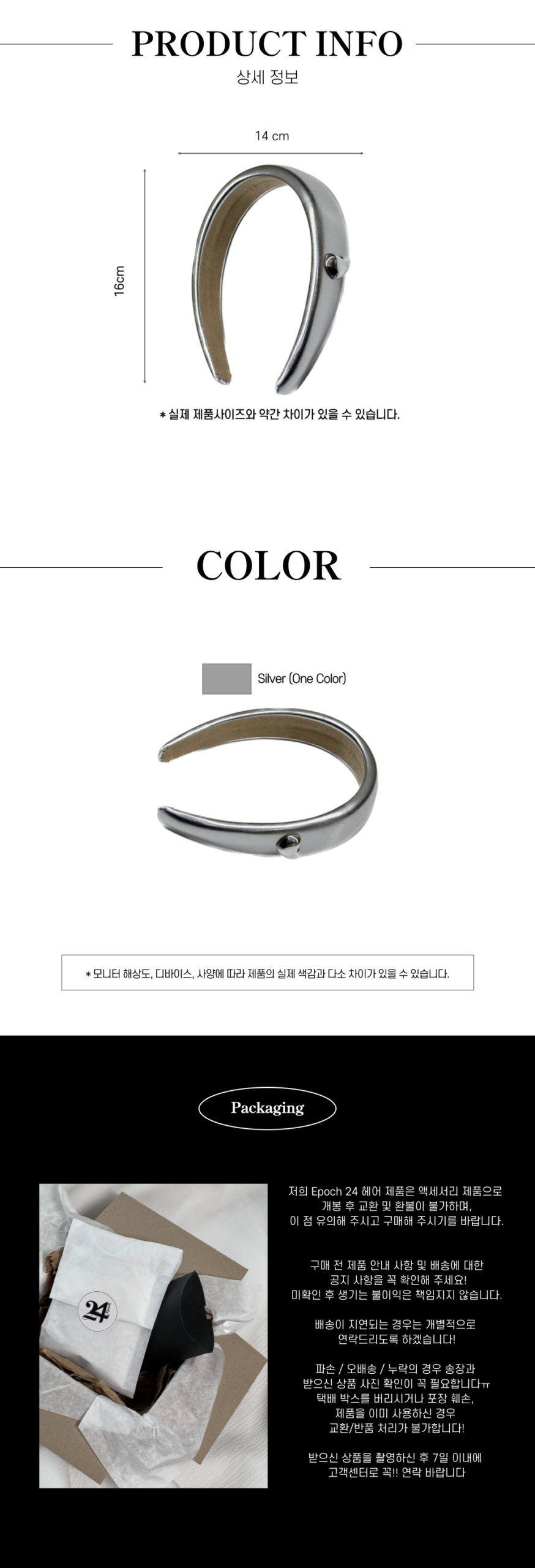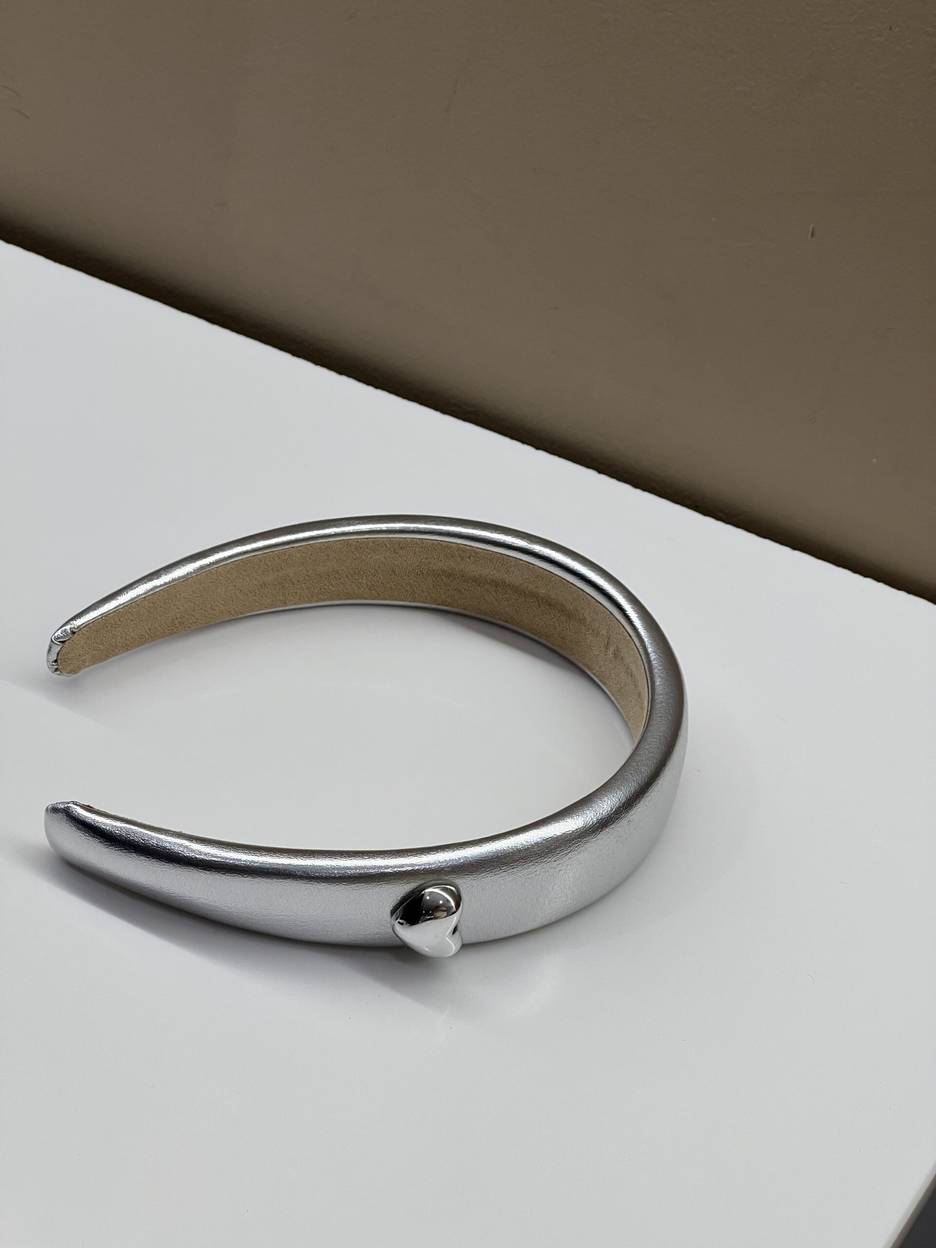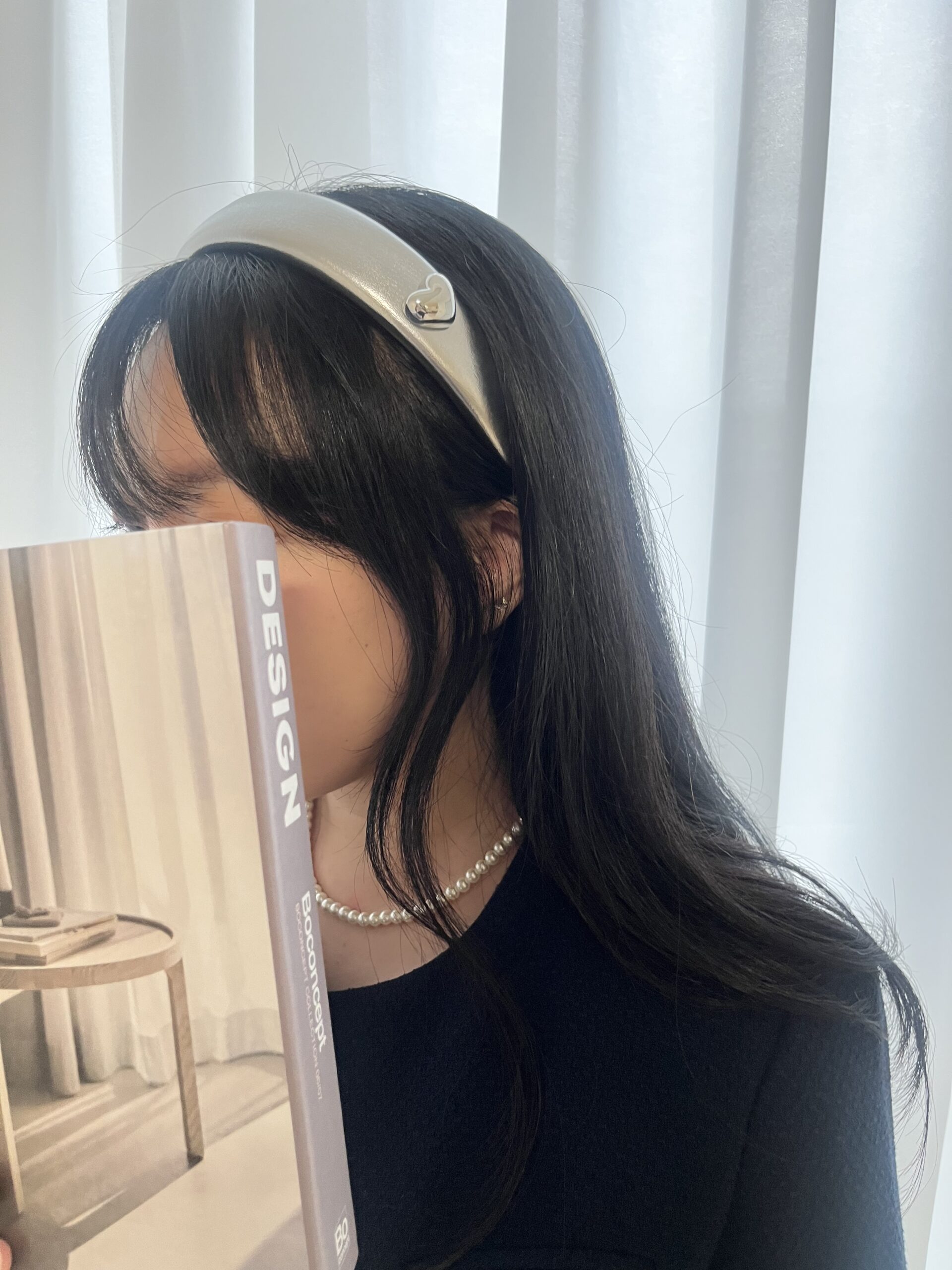 깔끔하고 베이직한 디자인에 하트가 포인트인 실버 헤어밴드입니다! 실버가 봄여름 제품이 아닌 사계절 착용하는 스테디가 되어가는 듯 해요:) 가을,겨울에도 어두운 컬러 옷에 포인트로 착용가능하고 연말에 화려한 분위기로 연출할 수 있는 제품입니다! 가죽 소재 의류, 실키한 블라우스, 티셔츠 등 다양하게 코디해도 잘어울려요
