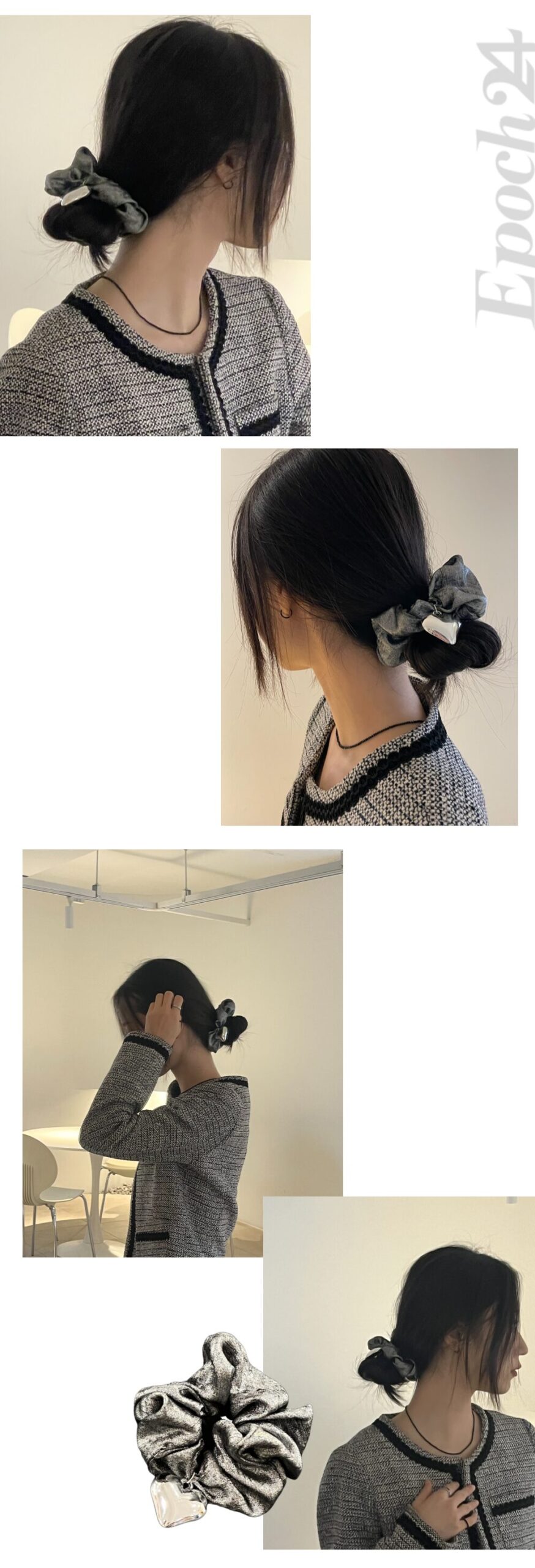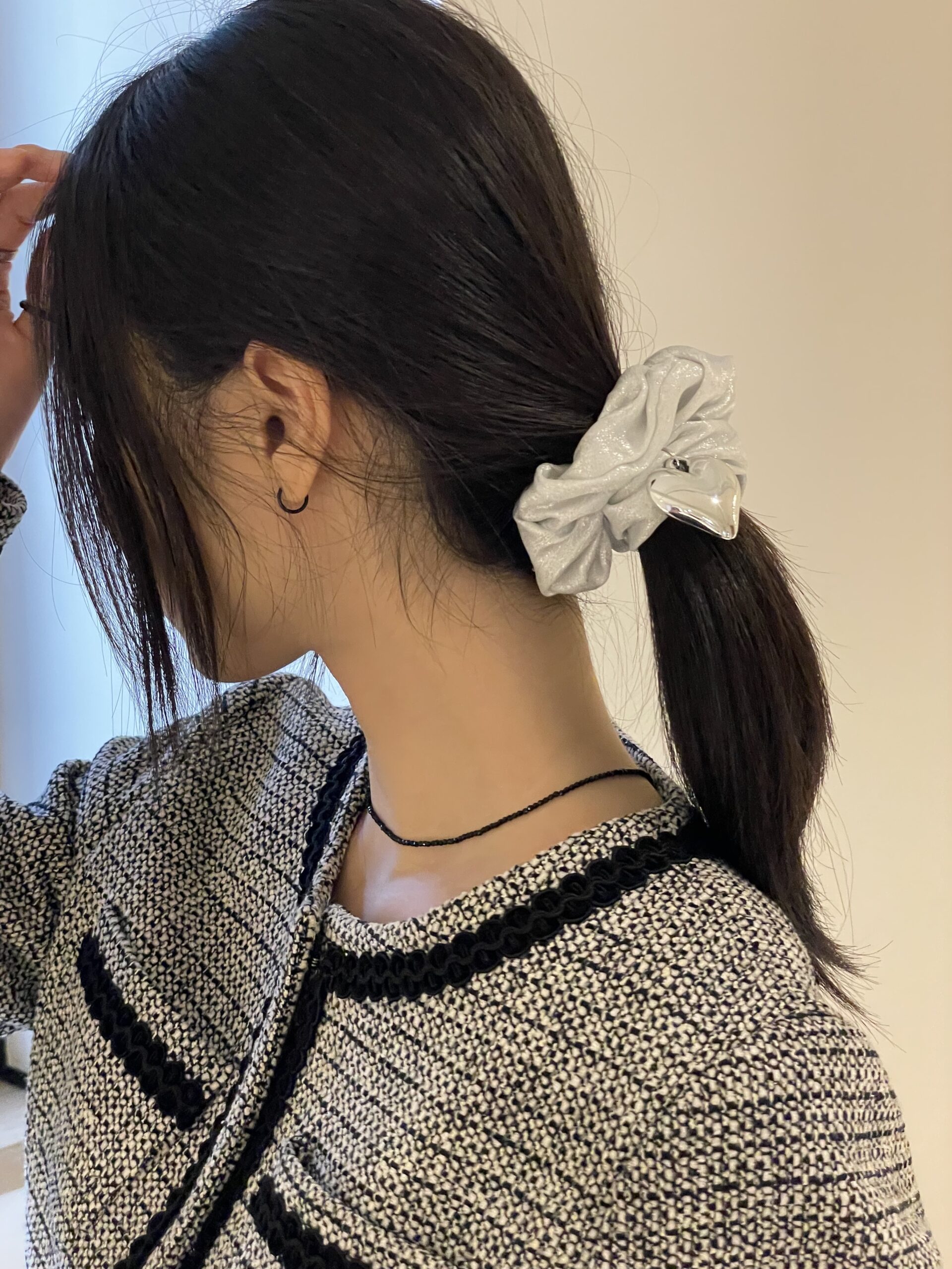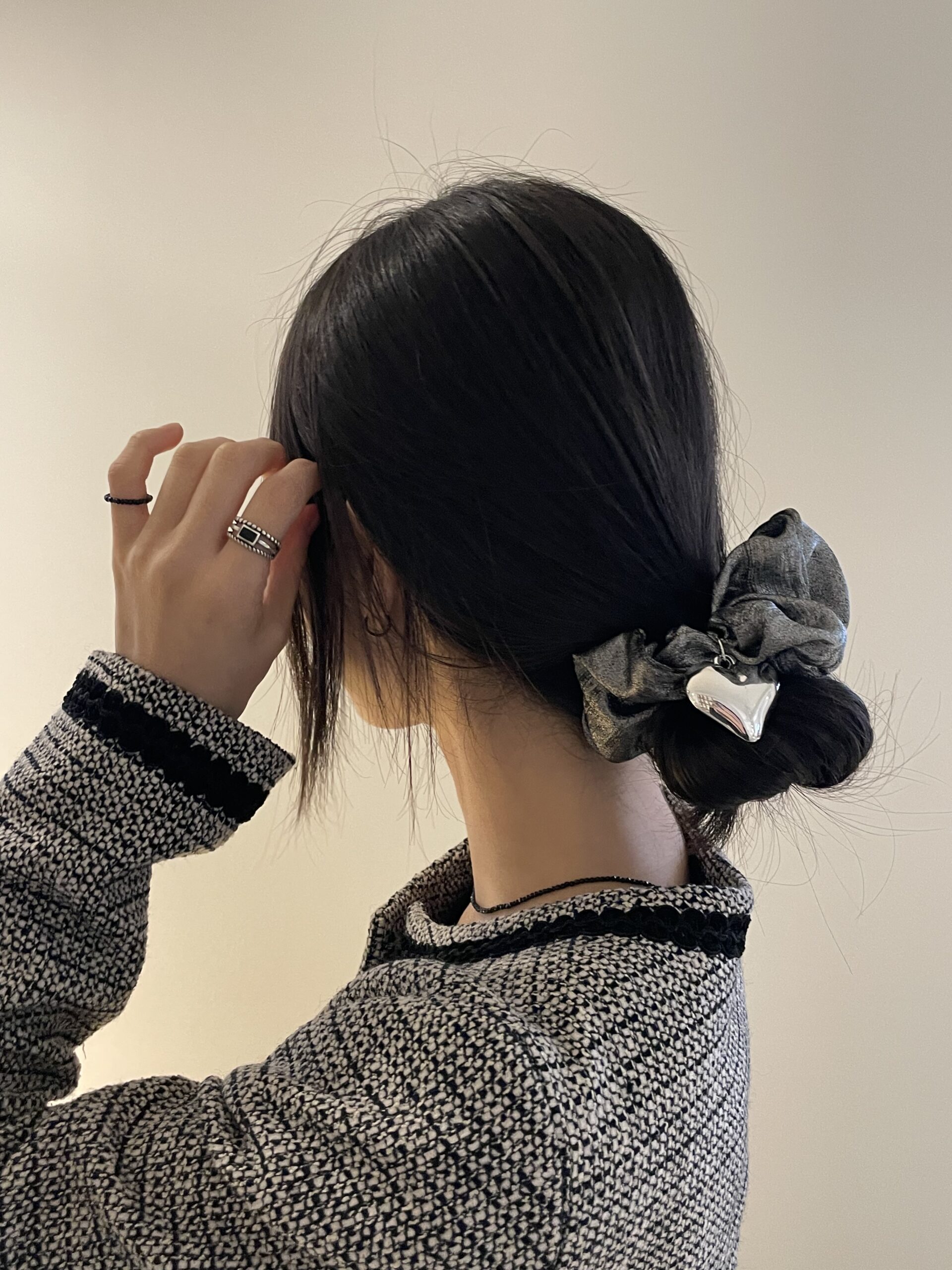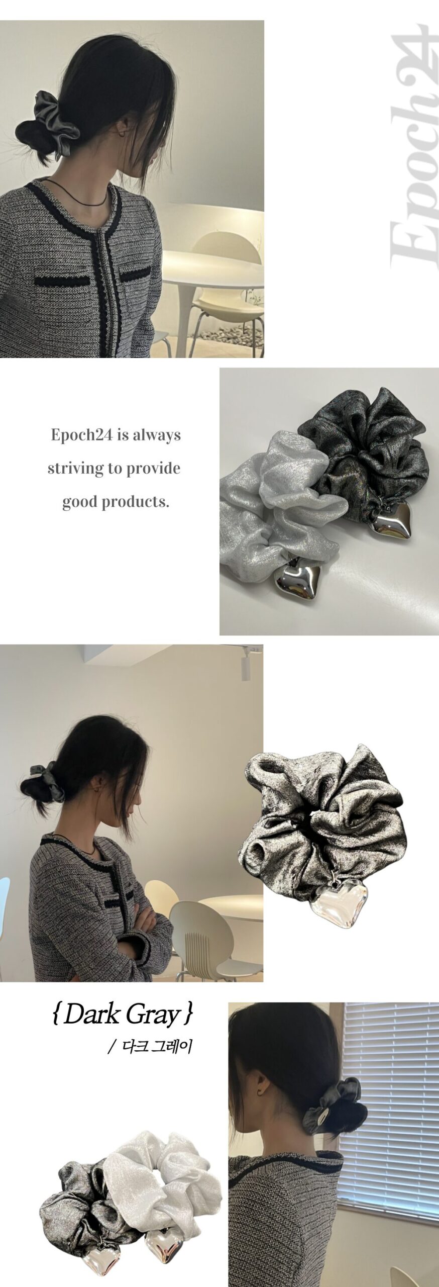 펄감이 있는 실키한 오간자 소쟁와 포인트가 되는 실버하트 팬던트가 달려있는 스크런치 제품입니다. 시크하면서도 고급스러운 분위기로 연출가능하며 반묶음이나 로우번 등 다양한 스타일링으로 착용하실 수 있습니다 . 하객룩, 데이트룩으로 추천드리니 다양하게 연출하여 착용해보세요!